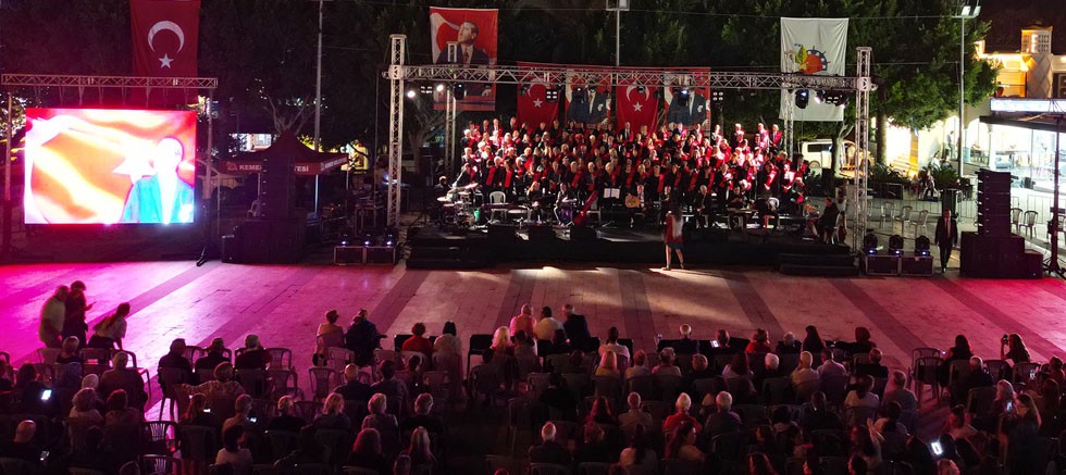Kemer Belediyesi Türk Müziği Topluluğu, Antalya Emekli Subaylar Türk Müziği Topluluğu ve Nağmekar Türk Müziği Topluluğu’nun oluşturduğu 100 kişilik Türk Halk Müziği Cumhuriyet Korosu, Cumhuriyet'in 100'ncü yılı kutlamaları kapsamında Kemer'de konser verdi.
