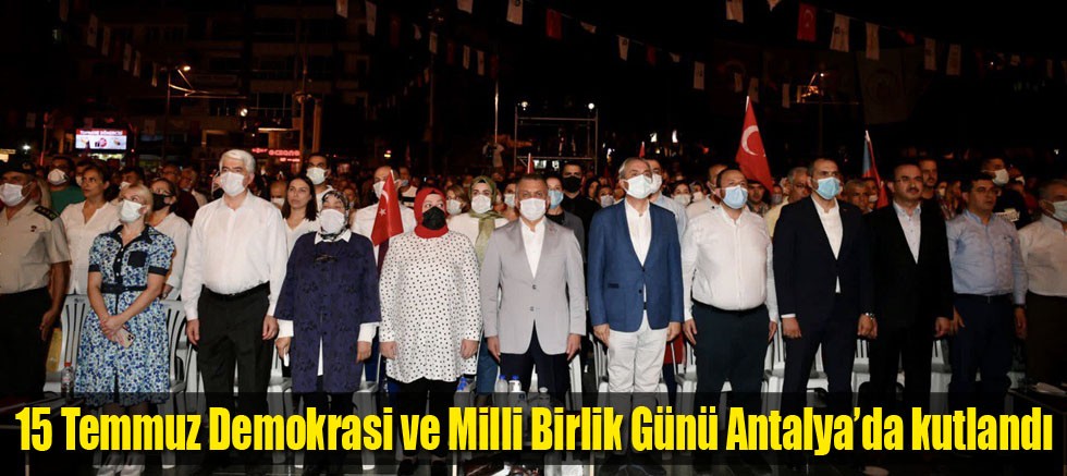 15 Temmuz Demokrasi ve Milli Birlik Günü dolayısıyla Antalya Müzesi önünden Cumhuriyet Meydanı'na kadar, `Milli Birlik Yürüyüşü' düzenlendi. Vatandaşların yoğun katılım gösterdiği yürüyüşe, yabancı turistler de ilgi gösterdi. Yürüyüşe Vali Ersin Yazıcı, Garnizon Komutanı Piyade Albay Erdal Köse, Akdeniz Üniversitesi Rektörü Prof. Dr. Özlenen Özkan, İl Jandarma Komutanı Tuğgeneral Mustafa Başoğlu, İl Emniyet Müdürü Mehmet Murat Ulucan, Büyükşehir Belediye Başkan Vekili Mesut Kocagöz, siyasi parti temsilcileri, çok sayıda protokol üyesi ile binlerce vatandaş katıldı.