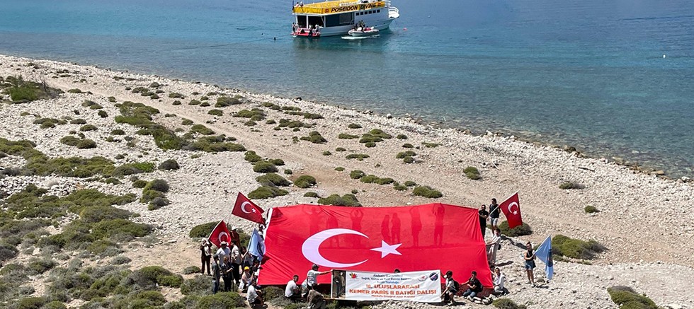 DENİZDE DEV TÜRK BAYRAĞI AÇILDI