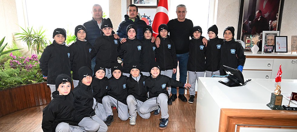 Minik futbolcularla selamlaşan Başkan Topaloğlu, ziyarette, Atabey’den kulüp ve katıldıkları turnuva hakkında bilgi aldı.