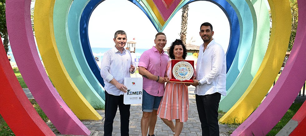 Türkiye’nin en önemli turizm destinasyonları arasında yer alan Kemer’e 20 yıldır gelerek tatil yapan Finlandiyalı Heidi ve Jari Sorsa çiftine, Kemer Belediye Meclis Üyesi Cansın Efir ile Kemer Turizmci ve İş İnsanları Derneği (KEMİAD) Başkan Yardımcısı Özkan Çakmak teşekkür plaketi verdi.