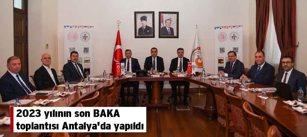 2023 yılının son BAKA Yönetim Kurulu toplantısı Antalya Valiliği toplantı salonunda yapıldı. Toplantıya Vali Hulusi Şahin, Isparta Valisi Aydın Baruş, Burdur Valisi Türker Öksüz, Antalya Ticaret Odası Başkanı Ali Bahar, Antalya Ticaret Odası Meclis Başkanı Ahmet Öztürk, Isparta Ticaret Odası Başkanı Metin Çelik, Isparta Ticaret Odası Meclis Başkanı Akif Aslan, Burdur Ticaret Odası Başkanı Yusuf Keyik, Burdur Ticaret Odası Meclis Başkanı Ömer Çeliker ve BAKA Genel Sekreteri Volkan Güler katıldı.