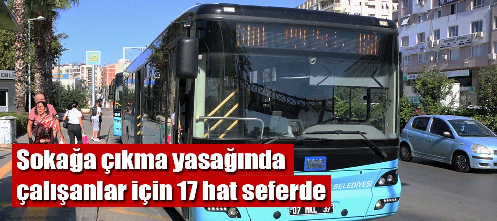 Antalya Büyükşehir Belediyesi, 30 Nisan gecesi başlayacak 3 günlük sokağa çıkma yasağı kapsamında çalışması zorunlu olan sağlık personeli, kamu ve diğer çalışanların toplu ulaşımını sağlamak için planlama yaptı. 3 günlük sokağa çıkma yasağı boyunca 17 hat seferde olacak.