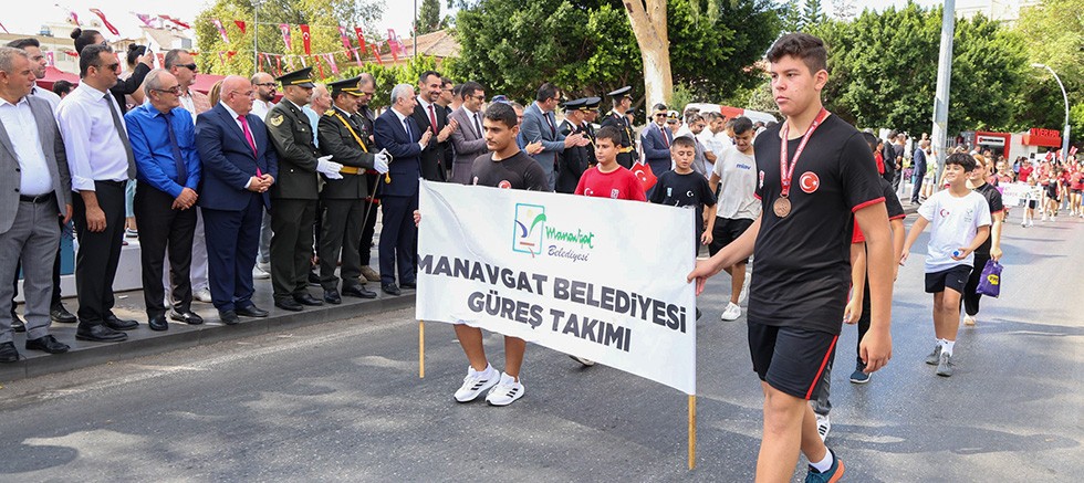 Kutlamalar, sabah saatlerinde Manavgat Kaymakamı Adil Karataş, Manavgat Belediye Başkan Vekili Av. Mehmet Çiçek ve Garnizon Komutanı Albay Nizamettin Alp’in Kaymakamlık makamında tebrikleri kabulüyle başladı. Tebriklerin ardından kutlamalar Cumhuriyet Meydanı’nda düzenlenen resmi törenle devam etti. Atatürk Anıtı’na Kaymakamlık, Belediye Başkanlığı ve Garnizon Komutanlığı çelenkleri sunuldu. Ardından, saygı duruşu ve İstiklal Marşı okunarak tüm şehitler anıldı.