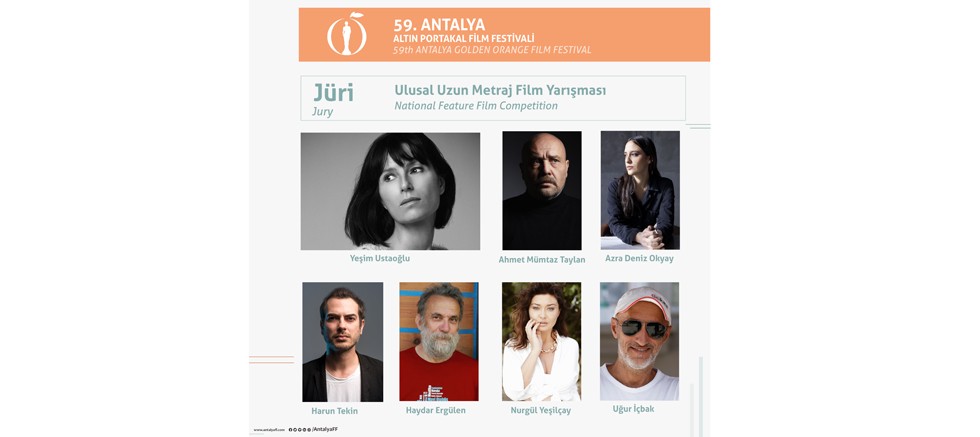 1989 yılında Diyarbakır Devlet Tiyatrosu’nda başladığı kariyerine sayısız tiyatro oyunu, televizyon dizisi ve film sığdıran, “Misafir” adlı oyunuyla İsmet Küntay En İyi Yönetmen Ödülü’nü kazanan, Cannes Film Festivali Büyük Ödülü’ne sahip “Bir Zamanlar Anadolu’da” başta olmak üzere “İnşaat”, “Anlat İstanbul”, “Cenneti Beklerken”, “Mavi Gözlü Dev”, “Kelebeğin Rüyası”, “Sen Aydınlatırsın Geceyi”, “Daha”, “Ölümlü Dünya” ve daha pek çok filmde başarılı performanslara imza atan, 2020 yılında “Gelincik” filmi ile Altın Portakal, En İyi Erkek Oyuncu Ödülü’ne layık görülen usta oyuncu, yönetmen Ahmet Mümtaz Taylan; “Sulukule Mon Amour” ve “Küçük Kara Balıklar” gibi kısa filmleriyle tanıdığımız, ilk uzun metraj filmi “Hayaletler” ile Venedik Film Festivali’nin Eleştirmenler Haftası Büyük Ödülü’ne layık görülen, 57. Antalya Altın Portakal Film Festivali’nden Ulusal Uzun Metraj Film Yarışması En İyi Film ve En İyi Yönetmen Ödülü’nün de aralarında olduğu 5 ödülle dönen ve Varşova Film Festivali’nde FIPRESCI ödülünü kazanan yönetmen-senarist Azra Deniz Okyay; grubu mor ve ötesi ile 1995’ten bu yana sekiz stüdyo albümüne ve yüzlerce konsere imza atan, 2008 yılında Türkiye’yi Eurovision’da temsil eden, 2011-2013 yılları arasında Bilgi Üniversitesi Müzik Bölümü’nde şarkı yazarlığı dersleri veren, kuruluşundan beri Socrates dergisinin danışma kurulunda yer alan, Mart 2018 - Mart 2022 tarihleri arasında iki dönem müzik meslek birliği MSG’nin başkan yardımcılığını üstlenen, 2016’dan beri Babajim İstanbul Stüdyoları ile DasDas’ı yöneten iki ayrı ekipte yer alan müzisyen Harun Tekin; 16 şiir, 30’u aşkın düzyazı kitabına imza atan, şiir kitapları beş dilde yayımlanan, Metin Altıok, Cemal Süreyya, Behçet Necatigil ve Altın Portakal Şiir Ödülleri’nin aralarında olduğu sayısız ödüle sahip, 2022 yılında tüm yapıtları Vedat Türkali Edebiyat Ödülleri’nde Onur Ödülü’ne layık görülen ve sinema yazılarını içeren “Sonradan Görme” adlı kitabı bulunan şair Haydar Ergülen; beyazperdede “Anlat İstanbul”, “Eğreti Gelin”, “Adem’in Trenleri”, 2007 Cannes Film Festivali En İyi Senaryo Ödüllü “Yaşamın Kıyısında”, “Vicdan”, “7 Kocalı Hürmüz”, “Çınar Ağacı”, “Aşk Kırmızı”, “Gece” gibi usta yönetmenlerin filmlerinde unutulmaz performanslara imza atan, televizyonda “İkinci Bahar” ve “Asmalı Konak” dizileri ile dikkat çeken, “Muhteşem Yüzyıl Kösem” dizisi ile yurtdışında da büyük ses getiren, Altın Portakal, Altın Koza, Çağdaş Sinema Oyuncuları Derneği ve Sinema Yazarları Derneği En İyi Kadın Oyuncu ödülleri sahibi başarılı oyuncu Nurgül Yeşilçay ve “Yol Ayrımı”, “Av Mevsimi”, “Hokkabaz”, “Hoşçakal Yarın”, “Eşkıya”, “İstanbul Kanatlarımın Altında” ve “İz” başta olmak üzere 17 uzun metraj filme, son olarak “Erşan Kuneri” dizisi ile çok sayıda reklam ve klip çalışmasına imza atan, En İyi Görüntü Yönetmenliği dalında iki Altın Portakal’ı, bir Sinema Yazarları Derneği ödülü bulunan, Mimar Sinan Üniversitesi’nde eğitmenlik yapan usta görüntü yönetmeni Uğur İçbak, Altın Portakal heyecanı yaşayacak 10 filmi değerlendirecek jüri üyelerini oluşturuyorlar.