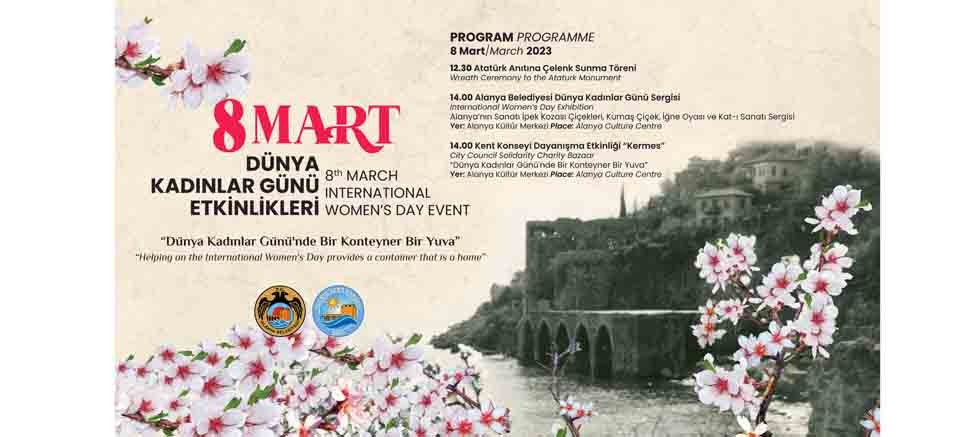 Alanya Belediyesi; Sivil Toplum Kuruluşlarıyla iş birliği yaparak deprem felaketinden etkilenen vatandaşlarımıza moral, motivasyon olması amacıyla 8 Mart Dünya Kadınlar Günü’nde, Kültür Merkezinde özel bir sergi ve bazı etkinlikler düzenleyecek. Etkinlikler kapsamında Alanya Belediyesi Kültür ve Sosyal İşler Müdürlüğü, 8 Mart Dünya Kadınlar Günü’nde, doğanın uyanışı, umudun simgesi, baharım müjdecisi “Badem Çiçekleri” konulu özel bir sergi tasarladı. Alanya Kent Konseyi ise Kültür Merkezi girişinde “Dünya Kadınlar Günü’nde Bir Konteyner Bir Yuva” isimli dayanışma kermesi düzenleyecek. Kermesten elde edilen gelir konteyner alımında kullanılacak.