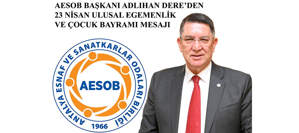 Antalya Esnaf ve Sanatkarlar Odaları Birliği AESOB Başkanı Adlıhan Dere 23 Nisan Ulusal Egemenlik ve Çocuk Bayramı dolayısıyla bir kutlama mesajı yayınladı.
