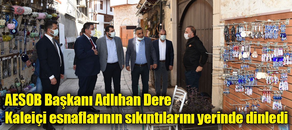 Kaleiçi esnafının sorunlarını ve taleplerini yerinde dinlemeye geldiklerini aktaran AESOB Başkanı Adlıhan Dere, “Bugün, Kaleiçi Otelciler ve Esnaflar Derneği Başkanımız Hasan Yiğitgil, Başkan Yardımcısı Eyüp Yıldırımcan, Ak Parti Kepez ve Büyükşehir Belediye Meclis Üyemiz Dilaver Tanık, Mhp Kepez Belediye Meclis Üyemiz Adem Çelik ve Ak Parti Kepez Belediye Meclis Üyemiz Av. Mekin Arslan Başak ile birlikte Kaleiçi’nde esnaf ve sanatkarlarımızı işyerlerinde ziyaret ediyoruz. Esnafımızın Pandemi sürecinde yaşadığı sıkıntıları yerinde dinliyoruz, taleplerini ilgili makamlara iletmek üzere not alıyoruz. Pandemiden dolayı turizm alanında yaşanan gerileme esnaf ve sanatkarlarımızı olumsuz etkilemiş durumda. Özellikle yerli ve yabancı turistlerin uğrak yeri olan Kaleiçi’nde ise esnafımızın gelirleri oldukça azaldı. Sezon başlarken Pandemi nedeniyle bir süreliğine kapalı kalan esnafımız normalleşme süreciyle birlikte işyerlerini açtı ancak sezondan umduğunu bulamadı. Önümüzdeki günlerde esnaf ve sanatkarlarımızı işyerlerinde ziyaret etmeye, esnafımızın sıkıntılarını dinleyerek taleplerini dile getirmeye ve Antalya Esnaf ve Sanatkarlar Odaları Birliği olarak yanlarında olmaya devam edeceğiz.” dedi.