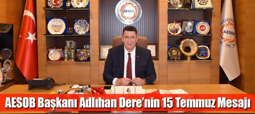 Antalya Esnaf ve Sanatkarlar Odaları Birliği - AESOB Başkanı Adlıhan Dere, 15 Temmuz Demokrasi ve Milli Birlik Günü’nün yıl dönümünü kutlayarak; gazilerimize şükranlarını sunduğunu, şehitlerimizi ise rahmet ve minnetle andığını belirtti.