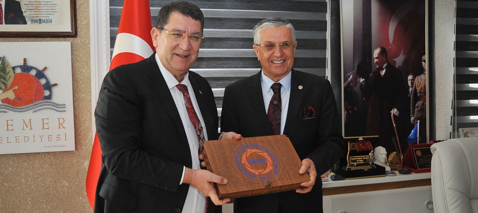 Antalya Esnaf ve Sanatkarlar Odaları Birliği (AESOB) Başkanı Adlıhan Dere, Kemer Belediye Başkanı Necati Topaloğlu’nu makamında ziyaret etti.