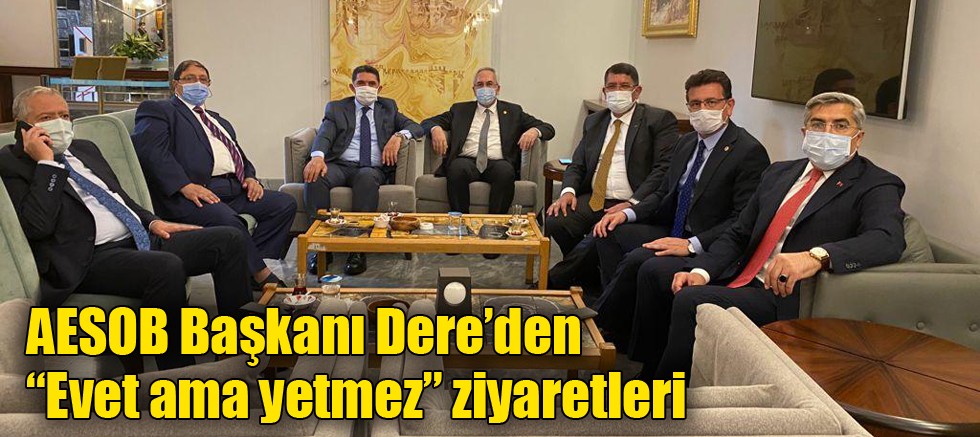 Dere bunun yanında; Esnafa “cansuyu kredisi” sağlanmasını, Ekmek fiyatlarının serbest piyasa koşullarına göre ayarlanmasını, Zincir ve ulusal marketlerin gıda ve temizlik ürünleri dışında ürünler satıp esnafımıza karşı haksız rekabet oluşturmaması talepleri de Bakan Muş’a iletti. Dere Ankara programında ayrıca TESK Genel Başkanı Bendevi Palandöken’i, KOSGEB Başkanı Hasan Basri Kurt’u, Esnaf, Sanatkarlar ve Kooperatifçilik Genel Müdürü Necmettin Erkan’ı da ziyaret etti. Dere, bu ziyaretlerinde de esnafın tam açılma ve hibe kredisinden yararlanamayanların listeye eklenmesi konusundaki taleplerini aktardı.