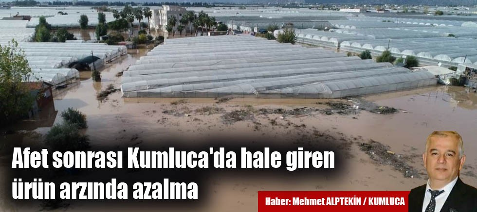 Kumluca’da yaşanan sel felaketinde sonrası, toptancı haline giren ürün miktarı da azaldı. Kumluca Yaş Sebze ve Meyve Komisyoncuları Derneği (KUM-SEK-DER) Başkanı Rahmi Açıkyürek, afetten sonra hale giren üründe yüzde 90 azalma olduğunu ve bunun da fiyatlara yansıdığını belirtti. Kumluca Ziraat Odası Başkanı Hidayet Kökce ise "Belki 5- 10 gün süreçte hasat yapamayacağız ama, diğer zarar görmeyen bölgeler üretime devam ediyor. Sofraları boş bırakmayacağız" dedi.