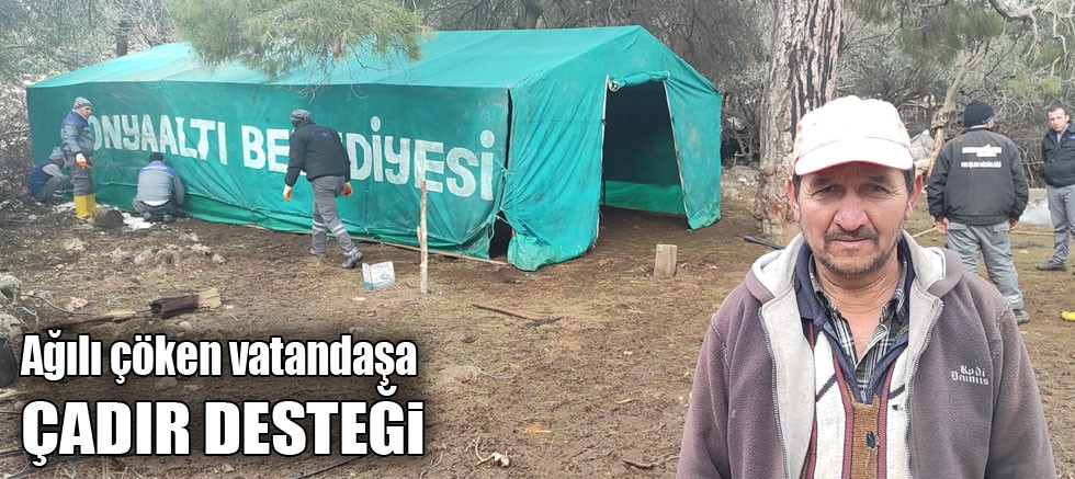 Konyaaltı Belediyesi, dolu yağışı sonrası ağılı çöken ve küçükbaş hayvanları açıkta kalan vatandaşa çadır desteği verdi.
