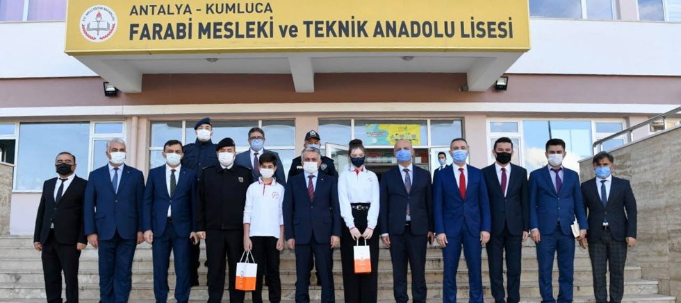 Antalya’da eğitim öğretim faaliyetlerini planlamak ve bu kapsamda eğitimde nitelik ve kaliteyi arttırmak amacıyla başlatılan AHENK Projesi (Antalya’da Hedeflenen Eğitime Nitelik Kazandırma) kapsamında okul ziyaretlerine tüm hızıyla devam eden Vali Ersin Yazıcı, Kumluca Farabi Mesleki ve Teknik Anadolu Lisesi’ni ziyaret ederek öğretmen ve öğrencilerle buluştu. Ziyarette Vali Yazıcı’ya Kumluca Kaymakamı Uğur Kolsuz, İl Jandarma Komutanı Tuğgeneral Yavuz Özfidan, İl Emniyet Müdürü Mehmet Murat Ulucan ve İl Milli Eğitim Müdürü Hüseyin Er eşlik etti.
