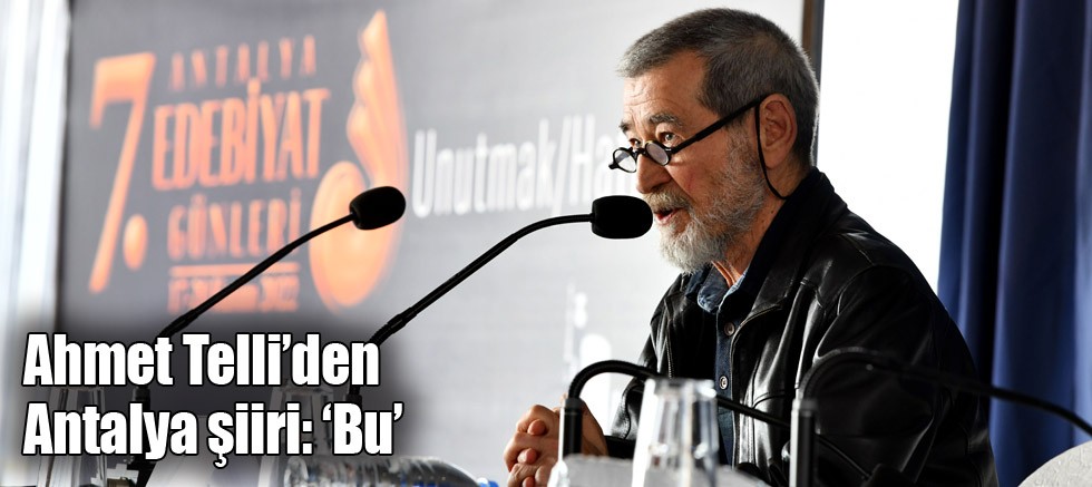 Şair Ahmet Telli, Muratpaşa Belediyesi’nin 7’ncisini gerçekleştirdiği Antalya Edebiyat Günleri kapsamında geçen ay Korkuteli’nden Elmalı ve Finike’ye gerçekleşen geziden hatırladıklarıyla ‘Bu’ isimli son şiirini yazdı. Telli, Antalya’ya dair yeni şiirini ilk Antalya Edebiyat Günleri’nde okudu.