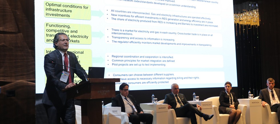 Akdeniz Enerji Düzenleyicileri Birliği (MEDREG) Özel Oturumu: Akdeniz Bölgesi’nde Enerji Dönüşümünde Düzenleyici Kurumların Rolü başlıklı oturumda MEDREG üyesi ülkelerin enerji piyasalarındaki son gelişmeler, düzenleyici kurumların enerji politikalarındaki rolü ve yenilenebilir enerji yatırımları konuşuldu. T.C Enerji Piyasası Denetleme Kurulu (EPDK) Başkanı Mustafa Yılmaz’ın açılış konuşmasıyla başlayan oturuma, MEDREG Başkan Yardımcısı ve Fas Düzenleme Kurulu Başkanı Abdellatif Bardach, MEDREG Direktörü Hasan Özkoç, MEDREG Kurumsal Çalışma Grubu Başkanı ve Ürdün Enerji Düzenleme Kurumu Elektrik ve Yenilenebilir Enerji Bölümü Direktörü Mohammad Maayah, Arnavutluk Enerji Düzenleme Kurumu Genel Sekreteri Elton B. Radheshi ve MEDREG Yenilenebilir Enerji Çalışma Grubu Başkan Yardımcısı, Lübnan Enerji Düzenleme Merkezi Teknik Danışmanı Sorina Mortada katıldı.