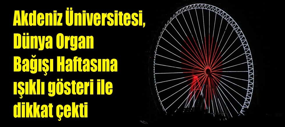 Akdeniz Üniversitesi Prof. Dr. Tuncer Karpuzoğlu Organ Nakli Merkezi, 3-9 Kasım Dünya Organ Bağışı Haftasına Türkiye’nin en büyük dönme dolabına yansıtılan ‘Organ Bağışlayın Cana Can Katın’ sloganıyla dikkati çekti.