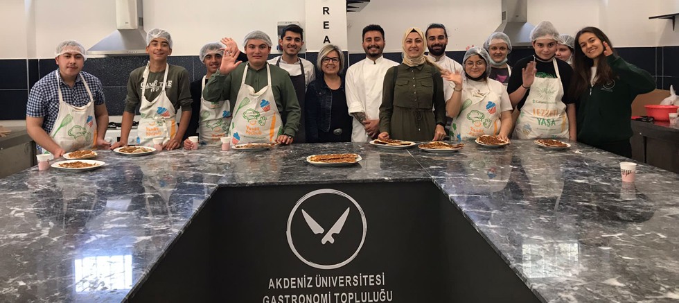 Akdeniz Üniversitesi Gastronomi Topluluğu da 10-16 Mayıs Dünya Engelliler Haftası kapsamında örnek bir etkinliğe imza attı. Akademik danışman Doç. Dr. Adem Arman önderliğindeki etkinlikte, Gastronomi Topluluğu üyesi üniversite öğrencileri, Kepez Özel Eğitim Meslek Okulu öğrencilerine pizza ve pide yapım eğitimi verdi. Özel öğrenciler hem hamur yoğurmayı öğrendi, hem de eğlenceli vakit geçirdi.