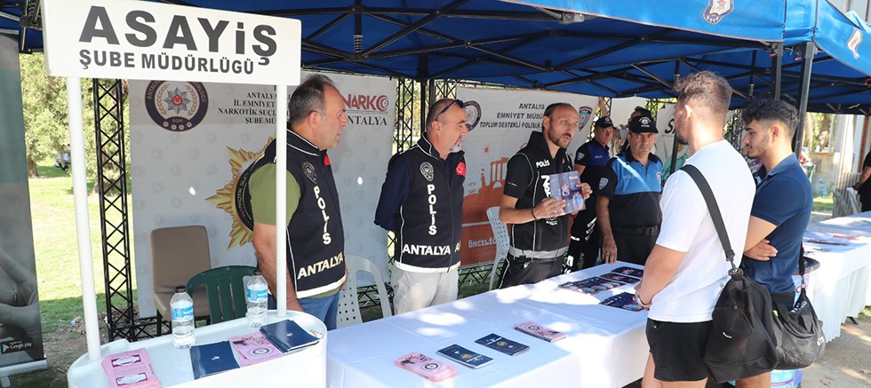 Antalya Emniyet Müdürlüğü'nden yapılan açıklamada şöyle denildi: "2024-2025 Akademik yılında, Akdeniz Üniversitesini kazanarak eğitimine başlamak üzere ilimize gelen öğrencilerin, şehrimizde kendilerini güvende hissetmelerini sağlamak, üniversite hayatlarında karşılaşabilecekleri sorunları suistimal etmeye çalışan kanuna aykırı oluşumlara karşı korumak, siber suçlar, iletişim yoluyla dolandırıcılık, 112 Acil Çağrı Merkezi, uyuşturucu maddelerin zararları ve UYUMA aplikasyonu, kadın ve çocukların fiziksel veya psikolojik şiddete karşı korunmasını amaçlayan KADES aplikasyonu hakkında bilgilendirme yapmak amacıyla; Terörle Mücadele, Güvenlik, Asayiş, Narkotik Suçlarla Mücadele, Siber Suçlarla Mücadele ve Toplum Destekli Polislik Şube Müdürlüklerimizce kampüs içerisinde stant açılmıştır.