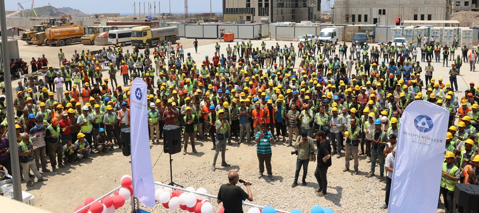 Tatlılar ve soğuk içeceklerin de yer aldığı çeşitli ikramların sunulduğu kutlama programında, inşaat işçilerine AKKUYU NÜKLEER A.Ş. Genel Müdürü Anastasia Zoteeva’dan gelen kutlama kartlarının da yer aldığı bayram hediyeleri verildi. Kutlamalar kapsamında inşaat sahasındaki tüm yemekhanelerde de özel bir bayram menüsü servis edildi.