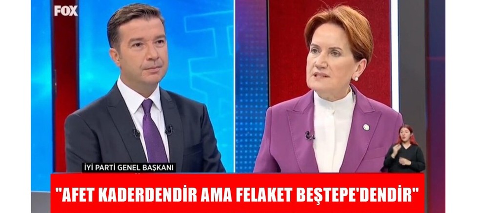 Kahramanmaraş merkezli depremler üzerinden sistem eleştirisi yapan Akşener, “Deprem olması kaderdir ama afetin felakete dönüşmesi kader değildir. Afet kaderdendir ama felaket Beştepe'dendir.” dedi.