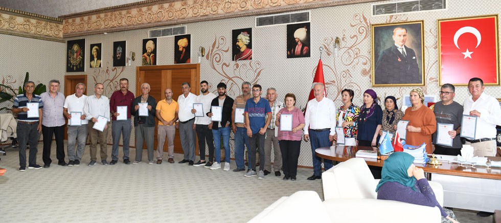 Her hafta Pınarlı, Cihadiye, Çamköy Mahallelerindeki hak sahiplerini tapularıyla buluşturan Aksu Belediyesi bu hafta da 16 kişiye tapusunu verdi. Hak sahipleri Belediye Başkanı Halil Şahin’in makamında bir araya gelerek tapularına kavuştu. Son verilen tapularla, tapusuna kavuşan vatandaş sayısı 204’e ulaştı.