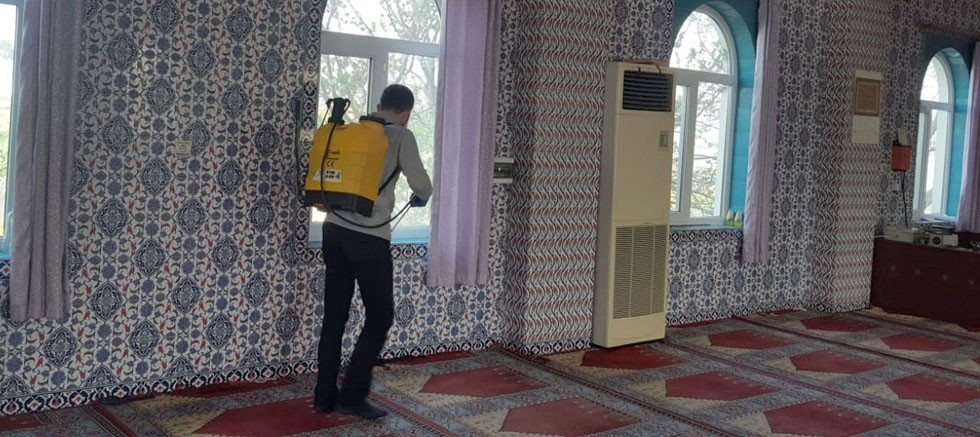 Aksu’da coronavirüs tedbirleri arttırıldı. Aksu Belediyesi, belediye hizmet binasının ardından ilçedeki kamu kurum ve kuruluşlarının binaları ile camilerde de dezenfektanla ilaçlama çalışması başlattı.