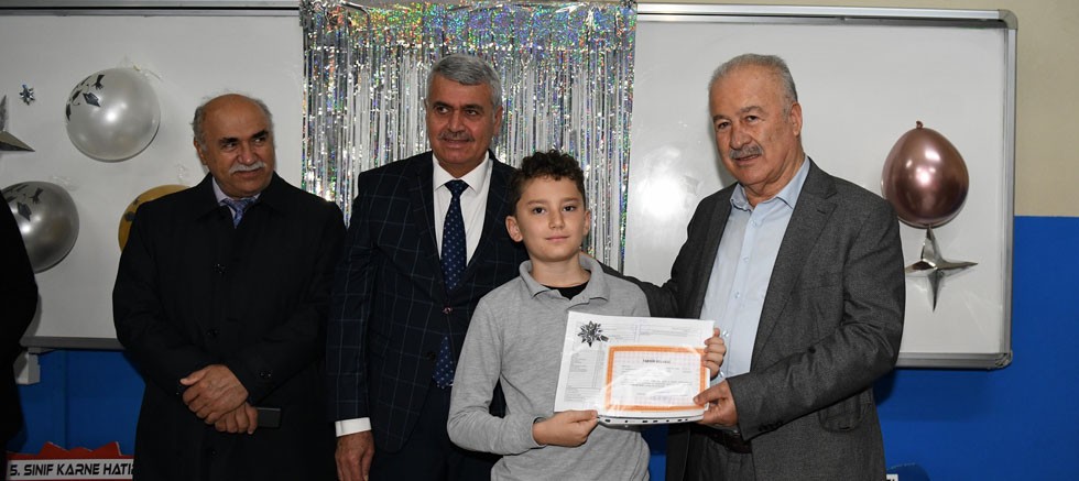 Aksu’daki öğrenciler karne heyecanı yaşadı. Okulların ilk döneminin sona ermesiyle Altıntaş’ta bulunan Nurcan-Rüstem Cömertoğlu Ortaokulunda karne töreni düzenlendi.