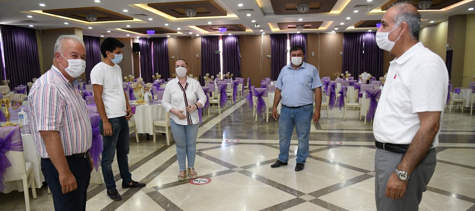 Denetimlerde Başkan Şahin; işletmelerde sosyal mesafelere, temizliğe ve maske kuralına sıkı sıkıya uyulmasını istedi.