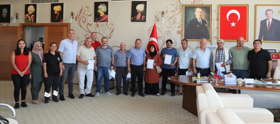 Haftalardır süren Pınarlı, Cihadiye, Çamköy Mahallelerindeki hak sahiplerinin tapu sevincine bu hafta 7 kişi daha eklendi. Hak sahipleri Belediye Başkanı Halil Şahin’in makamında tapularına kavuştu.