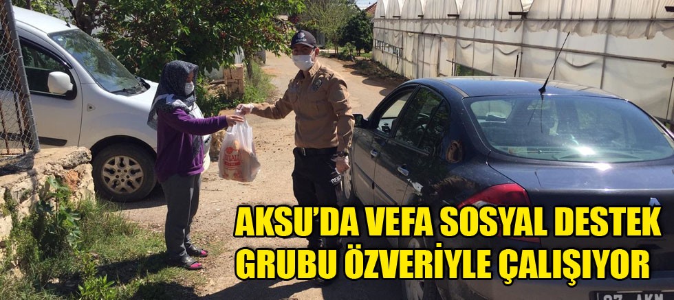 Aksu Kaymakamı Aydın Ergün ve Aksu Belediye Başkanı Halil Şahin ekiplerin çalışmalarını yakından takip etti. Vefa Sosyal Destek Grubu ilçede yaşayanların tüm taleplerini karşılamaya çalışarak büyük bir özveri örneği sergiledi. Vefa Sosyal Destek Grubu çalışmalarına ara vermeden devam ediyor.