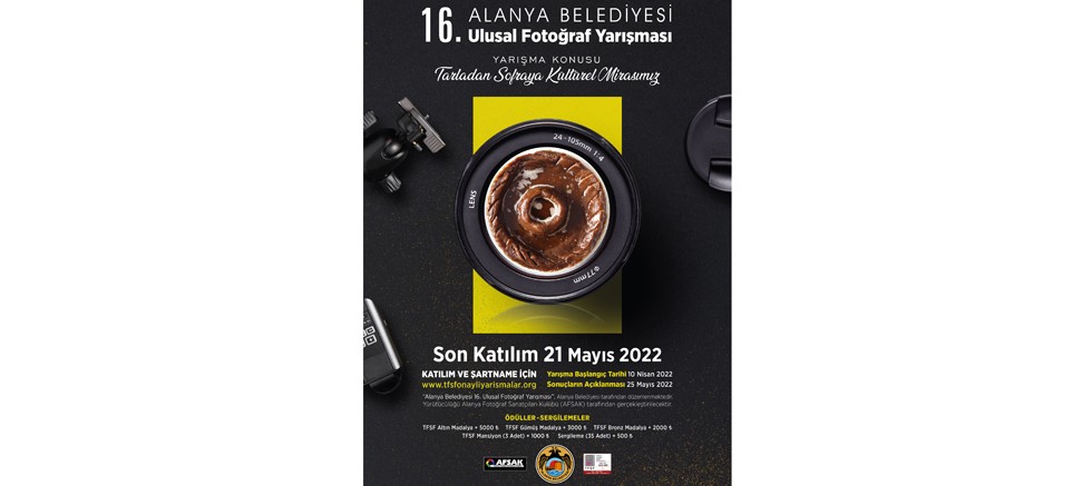 28-30 Mayıs’ta düzenlenecek Uluslararası Turizm ve Sanat Festivali kapsamında Alanya Belediyesi tarafından düzenlenen, “16. Alanya Belediyesi Ulusal Fotoğraf Yarışması” başvuruları devam ediyor. Adı “Tarladan Sofraya Kültürel Mirasımız” olan yarışmanın son başvuru tarihi ise 21 Mayıs.