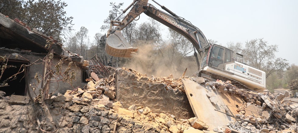 Alanya’nın farklı noktalarında etkili olan yangın afetinin ardından yaraları sarmak için çalışmalar başladı. Alanya Belediyesi, yangından en çok etkilenen mahallelerin başında gelen Bayır Mahallesi’nde Çevre ve Şehircilik Bakanlığı’nın ortak çalışmasıyla kullanılamaz hale gelen evler için verilen yıkım kararını uygulamaya koydu. Bölgede hasar tespit çalışmalarının tamamlanmasından sonra yeniden yapılmasına karar verilen 73 ev, Alanya Belediyesine bağlı iş makinaları tarafından yıkılıyor. Bölgede hafriyat ve yıkım çalışmalarının ardından kısa süre içinde yeni evlerin yapımına başlanacak.