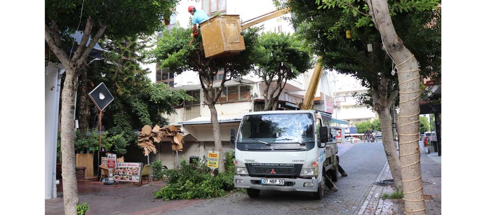 Alanya Belediyesi Park ve Bahçeler Müdürlüğü ekipleri, şehrin dört bir yanını yeşillendirmeye devam ederken bir yandan da ağaç bakım işlerini sürdürüyor.