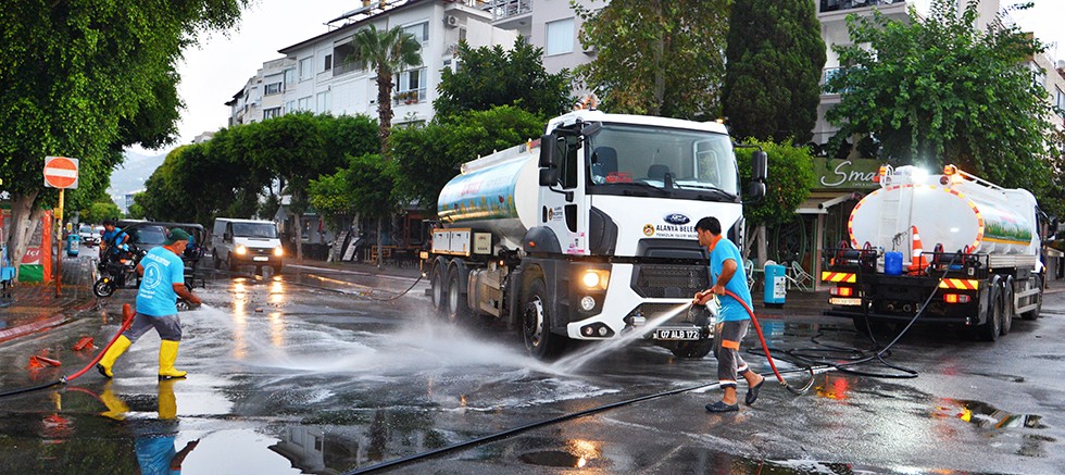 Alanya Belediyesi Temizlik İşleri Müdürlüğü ekipleri, kent genelindeki temizlik seferberliği çalışmalarına gece gündüz kapsamlı bir şekilde devam ediyor. Okul ve hastaneleri dezenfekte eden ekipler, plan-program dahilinde kentin dört bir yanını adım adım temizliyor.