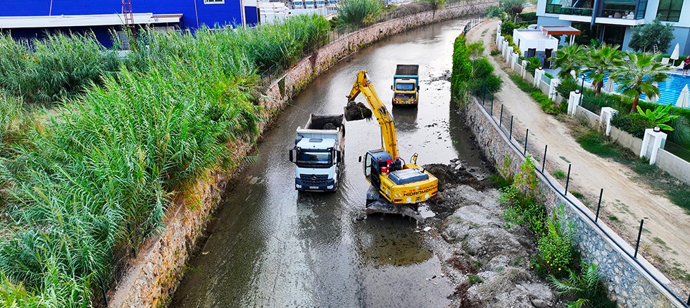 Çevreyi tehdit eden olumsuzlukları ortadan kaldırmak ve görüntü kirliliğini önlemek amacıyla çalışmalarını titizlikle yürüten Alanya Belediyesi, bunun yanı sıra estetik bir görünüm kazandırıyor. Fen İşleri Müdürlüğü ekipleri, özellikle yağışların etkili olduğu bölgelerde yaptığı çalışmalarla, suyun akışını engelleyen yabancı maddelerin ve birikintilerin temizlenmesi üzerine yoğunlaşıyor. Bu kapsamda hem kent merkezinde hem de kırsal mahallelerde yer alan dere yatakları elden geçirilerek, doğal su akışının sorunsuz şekilde devam etmesi sağlanırken, iş makineleriyle Hacet Deresi, Gümüşdere ve Oba Çayı temizlendi.