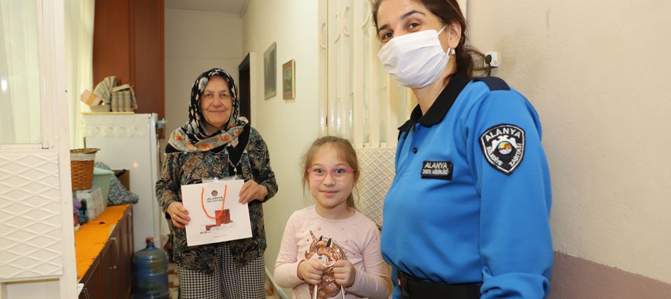 Alanya Belediye Başkanı Adem Murat Yücel’e ve ekiplere çok teşekkür eden Adıgüzel, “Sizlere ne kadar teşekkür etsem azdır. Beni ve torunumu çok mutlu ettiniz. 2 aydır evimizden dışarıya adım atamadık. Bizlere çok moral oldu. Adem Başkanımızı çok seviyoruz, çok takdir ediyoruz. Başarılar diliyorum. Allah yolunuzu açık etsin” dedi. Zabıta ekipleri, Adıgüzel ve torununa Başkan Yücel tarafından gönderilen hediyeleri de takdim etti.