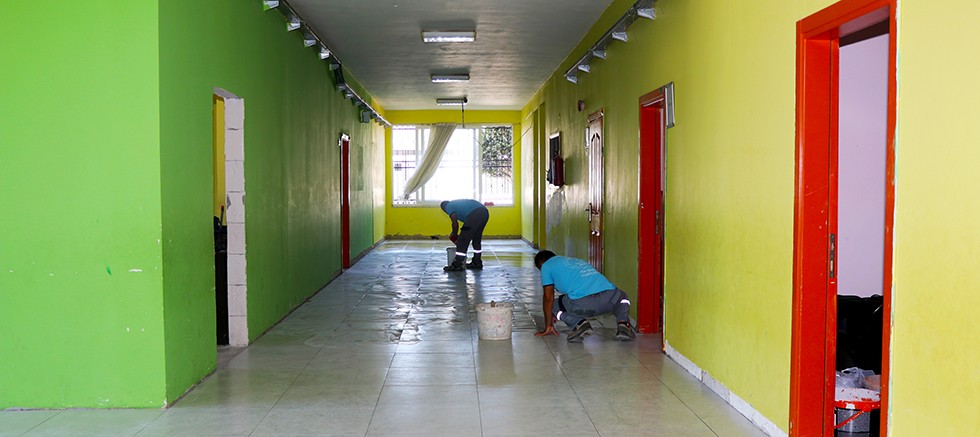 Tosmur Mahallesi’nde bulunan Fatma Özmüftüoğlu İlkokulu’nda Alanya Belediyesi Fen İşleri Müdürlüğü ekipleri seramik kaplama çalışması gerçekleştiriyor. Okulun girişinden itibaren koridor ile 5 sınıfı kapsayan alanda eskiyen ve yıpranan zeminin yerine yeni seramik kaplama yapılıyor. Yaklaşık 400 metrekarelik seramik kaplamanın ardından yapılacak derz işlemiyle çalışmalar kısa süre içerisinde tamamlanacak ve yeni sezona hazır olacak. Öte yandan okulun arka bahçesinden yeni bir kapı açılarak, öğrencilerin güvenli bir ortamda servis araçlarına binmesi sağlanacak. Ayrıca kapı, pencere, çatı, lavabo, tuvaletlerin bakım ve onarımı yapılıyor.