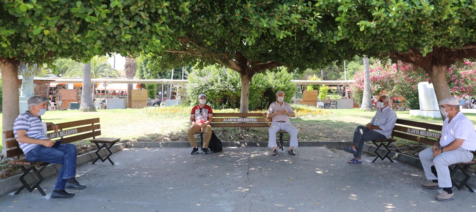 Alanya Belediyesi Park ve Bahçeler Müdürlüğü, parklarda birçok kişinin yan yana oturup sohbet ettiği bank ve oturma gruplarını ‘sosyal mesafe’ kuralına uygun olarak yenilemeye başladı. Yeni tip banklara en fazla iki kişi oturabilirken kişiler arasında da birer metre mesafe bırakıldı. Önlem amaçlı yapılan bu düzenlemelere ek olarak tasarlanan uyarıcı afişler, tüm vatandaşlarımızın dikkatini çekecek şekilde banklara asılmaya başlandı. Görseller ile toplumsal bilincin de arttırılması hedefleniyor.