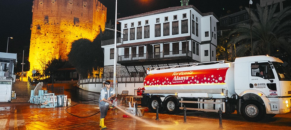 Ramazan Bayramı süresince vatandaşların ve yerli-yabancı misafirlerin daha temiz ve sağlıklı bir ortamda vakit geçirmesi amacıyla yürütülen çalışmalar kapsamında; kaldırımlar, yollar ve ortak kullanım alanları özel ekipmanlarla yıkanıyor. Kent estetiği ve hijyenine büyük önem veren ekipler, plan ve program dahilinde çalışmalarını titizlikle sürdürüyor. Caddeler, bulvarlar, pazar yerleri, meydanlar, yaya yolları ve kent mobilyalarının detaylı şekilde temizlendiği çalışmalar, şehrin her noktasında aralıksız devam ediyor. Yıl boyunca sürdürülen temizlik faaliyetlerini bayram öncesinde de yoğunlaştıran Alanya Belediyesi, çevre duyarlılığı konusunda vatandaşlara da destek çağrısında bulundu.
