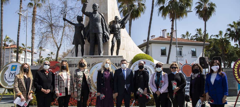 Tüm yurtta olduğu gibi 8 Mart Dünya Emekçi Kadınlar Günü Alanya’da da çeşitli etkinliklerle kutlandı. Atatürk Anıtı’na çelenk sunumu ile başlayan kutlama programına Alanya Belediye Başkanı Adem Murat Yücel, siyasi partilerin ilçe temsilcileri, oda ve dernek başkanları, sivil toplum kuruluşlarının temsilcileri ve vatandaşlar katıldı. Alanya Kent Konseyi’nin öncülüğünde tertiplenen program çerçevesinde Atatürk Anıtı’na çelenk sunumu yapıldı. Saygı duruşu ve İstiklal Marşı’nın ardından Alanya Kent Konseyi Başkanı Nurhan Özcan, günün anlam ve önemine binaen konuşma gerçekleştirdi. Programın ardından Alanya Belediye Başkanı Adem Murat Yücel, alanda bulunan kadınlara karanfil hediye etti.