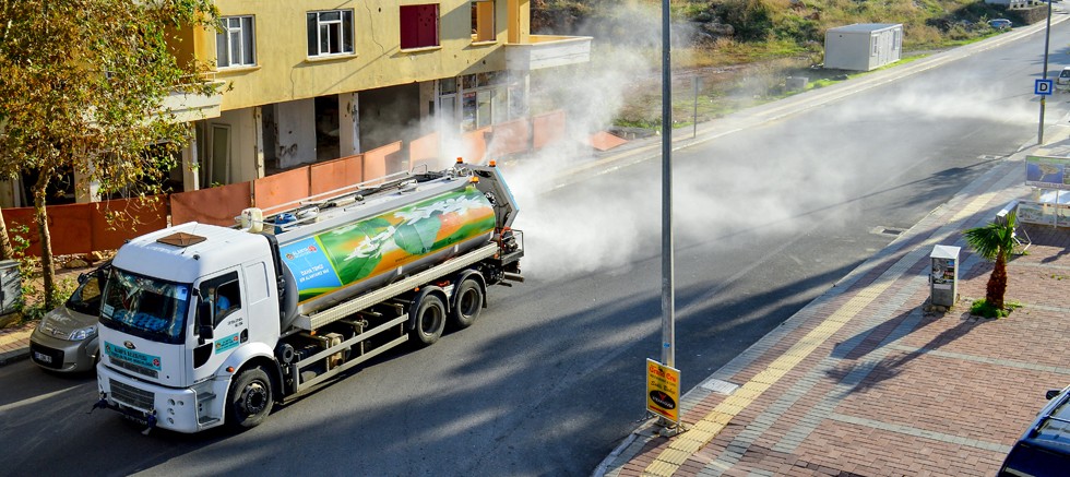 Ekipler, hafta sonları Alanya merkez otogar bölgesinden başlayarak Sugözü, Oba, Tosmur güzergahlarında ara sokaklar dahil olmak üzere mikronsis aracıyla gül kokulu dezenfekte işlemi yapıyor.