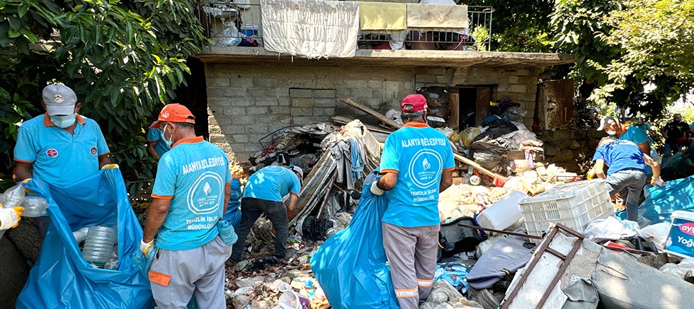 Kestel Mahallesi Tahsırlar Sokak’ta bir ailenin yaşadığı evden yayılan pis kokudan rahatsız olan vatandaşların şikayetleri ve Muhtar Hüsnü Uyar'ın girişimleriyle Alanya Kaymakamlığı’na başvuruldu. İlçe Hıfzısıhha Kurulu kararının ardından Alanya Belediyesi Temizlik İşleri Müdürlüğü ekipleri harekete geçti. Güvenlik güçleri nezaretinde gerçekleştirilen çalışmada ekipler, halk sağlığını tehlikeye atan ve devamlı olarak çöp biriktirildiği kaydedilen evi titizlikle temizleyerek, dezenfekte etti. Çalışmalar sonucunda 3 kamyon çöp ve 1 kamyon geri dönüşüm malzemeleri toplanan ev temiz hale getirildi.