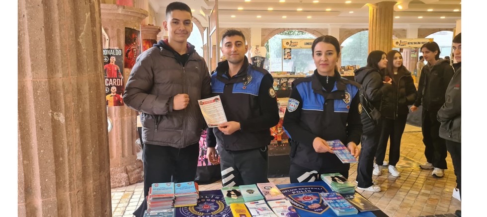Bu kapsamda Alanya ilçemizde düzenlenen 5.Kitap Fuarı etkinliğinde Toplum Destekli Polislik Büro Amirliğimiz görevlilerince stant açılarak, “KADES”, “UYUMA”, “En İyi Narkotik Polisi Anne”, “Farkında Ol, Oltaya Gelme”, “Trafik Kuralları Hayat Kurtarır” projeleri kapsamında broşür dağıtılarak bilgilendirme yapıldı, “Güvenli Huzurlu Turizm” projesi kapsamında 3 dilde (İngilizce, Almanca ve Rusca) hazırlanan Alanya ve Kale Haritaları dağıtılarak etkinliğe katılım sağlanmıştır.