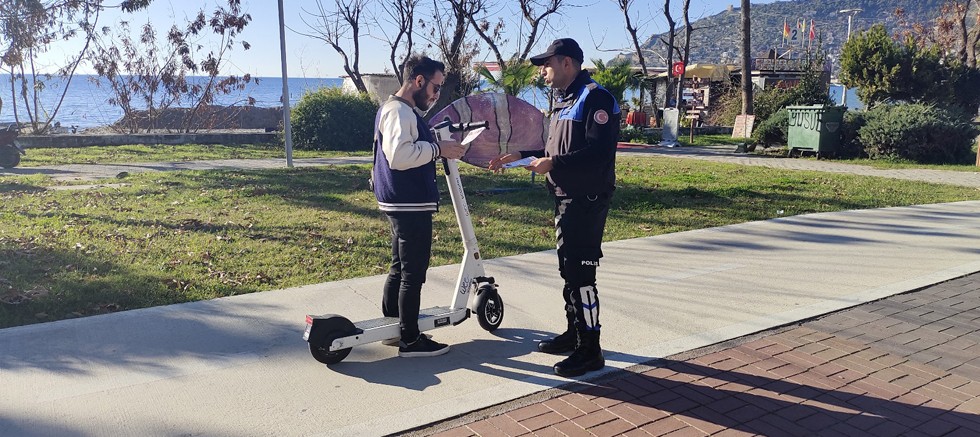 Alanya İlçe Emniyet Müdürlüğü Toplum Destekli Polislik Büro Amirliği görevlilerimizce yürütülen “Trafik Kuralları Hayat Kurtarır” projesi kapsamında; özellikle motosiklet, elektrikli scooter ve elektrikli bisiklet sürücülerine trafik kurallarının önemini anlatmak, trafikteki diğer aksaklıklara dikkat çekmek, meydana gelebilecek kazaların önüne geçmek ve toplumsal bilincin geliştirilmesi amacıyla E Scooter kullanımı ile ilgili 4 dilde (İngilizce, Almanca, Rusca, Türkçe) broşür hazırlanmıştır.