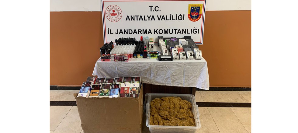 "Alanya Cumhuriyet Başsavcılığı talimatları doğrultusunda; Antalya İl Jandarma Komutanlığı KOM Şb. Md.lüğü ve Alanya İlçe Jandarma Komutanlığı ekiplerince Alanya İlçesinde elektronik sigara satışı yapıldığı yönünde alınan bilgi doğrultusunda; Y.Y. ve N.Y. isimli şahısların işyerinde yapılan aramada piyasa değeri 100.000 TL olan;