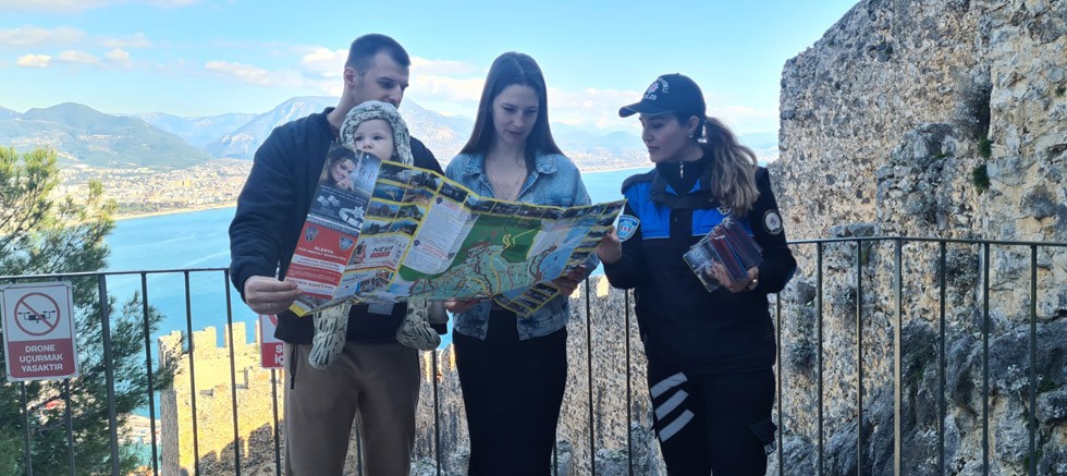 İlçe Emniyet Müdürlüğü görevlilerimizce, misafirlerimiz olan turistlere, bir rehbere ihtiyaç duymadan ilçemizi gezmelerini sağlamak için içeriğinde Alanya ilçemizin tarihi, doğa ve kültürel tanıtımı, ihtiyaç duyulduğunda kamu kurum ve kuruluşlarının telefon numaraları, toplu taşıma araçlarının güzergahları ve olası hırsızlık, yankesicilik, dolandırıcılık olaylarına karşı uyarıların bulunduğu Alanya Kent Haritası, turistlerin yoğun olduğu Alanya Kalesi ve çevresinde dağıtılmıştır.