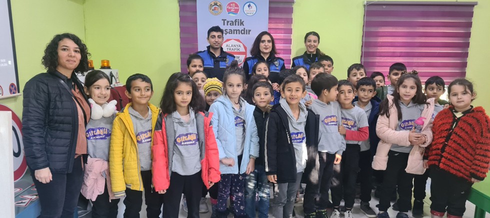 “Ailemin Trafik Polisiyim Projesi kapsamında; Alanya Belediyesine ait Trafik Eğitim Parkı’nda, Çıplaklı İlkokulu 2/D sınıfı öğrencileri, Hacı Kura İlkokulu 1.sınıf öğrencileri A-B-C-D-E-F şubeleri sınıf ortamında ziyaret edilerek,