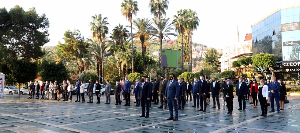 Türkiye Cumhuriyeti’nin kurucusu Ulu Önder Gazi Mustafa Kemal Atatürk’ün 24 Kasım 1928 yılında Millet Mektepleri Başöğretmenliği’ni kabul etmesinden bu yana kutlanan 24 Kasım Öğretmenler Günü, tüm yurtta olduğu gibi Alanya’da da kutlandı. COVID-19 pandemisi nedeniyle törenle sınırlı kalan kutlamalar Hükümet Meydanı’nda bulunan Atatürk Anıtı önünde gerçekleştirildi. Alanya Belediye Başkanı Adem Murat Yücel’in de katıldığı törende Alanya İlçe Milli Eğitim Müdürlüğü’nce Müdür Yusuf Yılmaz tarafından Atatürk Anıtı’na çelenk sunuldu.