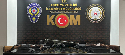 "Alanya Cumhuriyet Başsavcılığı’nın talimatları doğrultusunda, Kaçakçılık ve Organize Suçlarla Mücadele Şube Müdürlüğü görevlilerimizce “6136 Sayılı Kanun’a Muhalefet” ve “5607 Sayılı Kanun’a Muhalefet” suçları kapsamında silah kaçakçılığının ve alkol kaçakçılığının deşifresine ve suç unsurlarının ele geçirilmesine yönelik yapılan çalışmalarda;